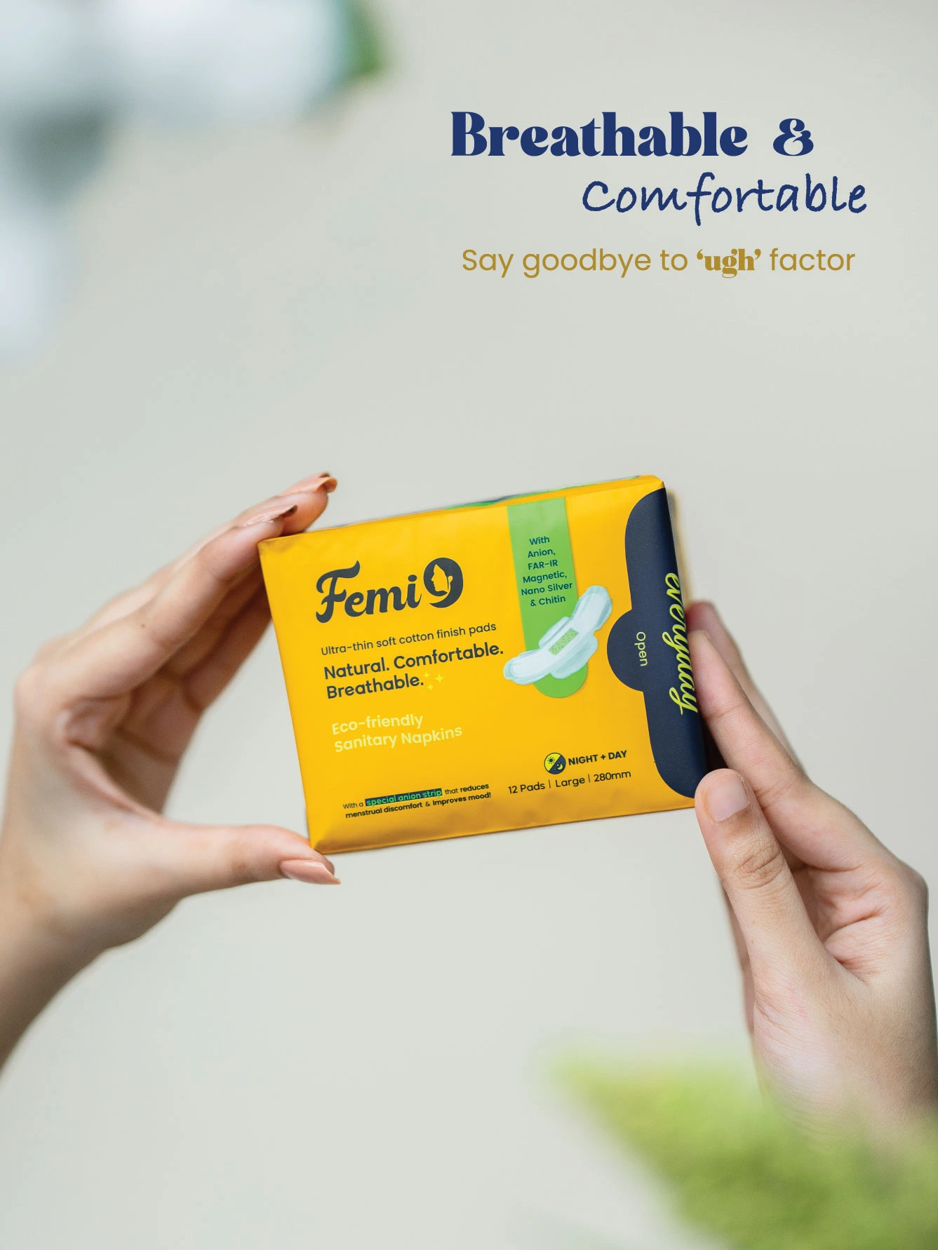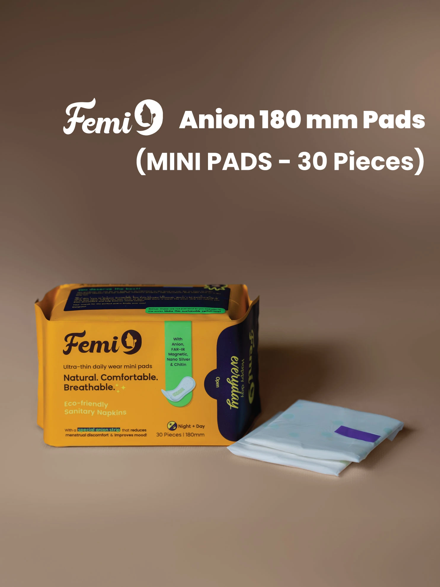Menstruation is a natural biological process; there is nothing more to ashamed of. It becomes difficult because of the wrong sanitary pads that have been chosen. Most of the women choose their pads based on the ads or something that had been chosen from the store. All the pads that are available on the market are chemical pads with Plastics & Recycled materials. Femi9 Anion sanitary napkins are meticulously crafted to offer unparalleled comfort and protection during menstruation. Made with premium-quality materials, each pad is designed to meet the unique needs of women's menstrual cycles.